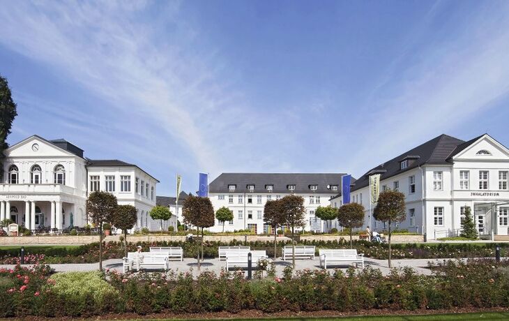 Das familiär geführte Haus besticht durch seine Behaglichkeit und Eleganz. Die komfortablen Zimmer sind ausgestattet mit Bad oder Dusche/WC, Föhn, Telefon, TV, Radio und Minibar. Die Zimmer der Komfort-Kategorie verfügen zudem über einen Balkon oder Terrasse. Zu den Einrichtungen des Hauses gehören verschiedene Restaurants, eine stilvolle Bar, gemütliche Bauernstube, Praxis für Naturheilkunde und physikalische Therapie. Gleich vis-à-vis schenken Ihnen die Gradierwerke unermüdlich die gesunde „Meeresluft“. Therapiezentrum, Konzert- und Wandelhalle, Kurhaus, Kurgastzentrum und Kurpark sind bequem zu Fuß zu erreichen.
