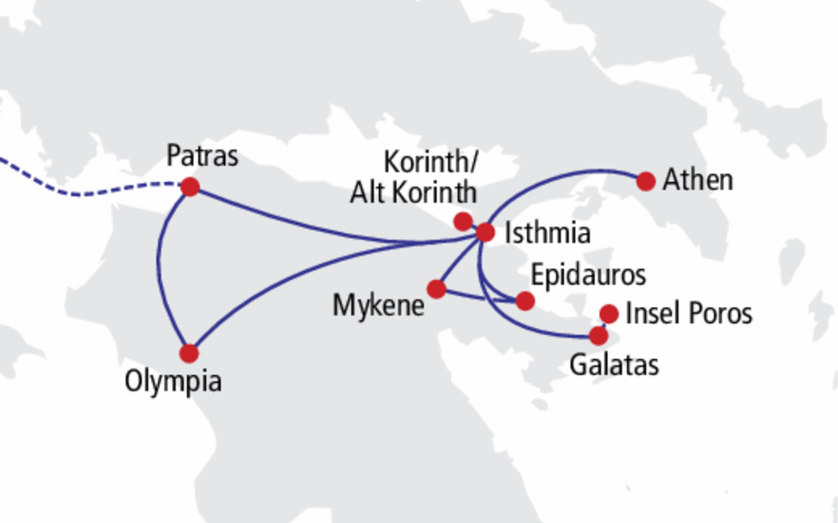 Entdecken Sie mit uns die atemberaubende Schönheit der Halbinsel Peloponnes, die wie kaum eine andere Region Griechenlands Geschichte und landschaftliche Vielfalt vereint. Lassen Sie sich von antiken Stätten, idyllischen Küstenlandschaften und charmanten Dörfern verzaubern. Ob beeindruckende Ausflüge zu berühmten Kulturschätzen oder entspannte Momente am Meer - erleben Sie auf dieser Reise unvergessliche Augenblicke und lernen Sie Griechenland von seiner faszinierendsten Seite kennen!