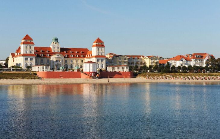 Das an den traditionellen Bäderstil angelehnte 5-Sterne-Wellnesshotel liegt am ruhigsten und exklusivsten Teil der Strandpromenade von Binz, umgeben von liebevoll restaurierten, historischen Villen und den herrlichen Buchenwäldern der Granitz. Die lichtdurchfluteten komfortablen Zimmer zur Landseite verfügen über einen Balkon und sind ausgestattet mit Dusche bzw. Badewanne/WC, Haartrockner, Bademantel, Flachbildfernseher, Sky-TV, Minibar, Telefon und Safe. Kulinarisch verwöhnt Sie der Küchenchef im Restaurant Ruiani und Cocktails können Sie in der Bar Shaker's genießen. Eine Oase der Entspannung finden Sie in dem über 750 m² großen Well Being & Beauty Spa mit Schwimmbad und drei Saunen.