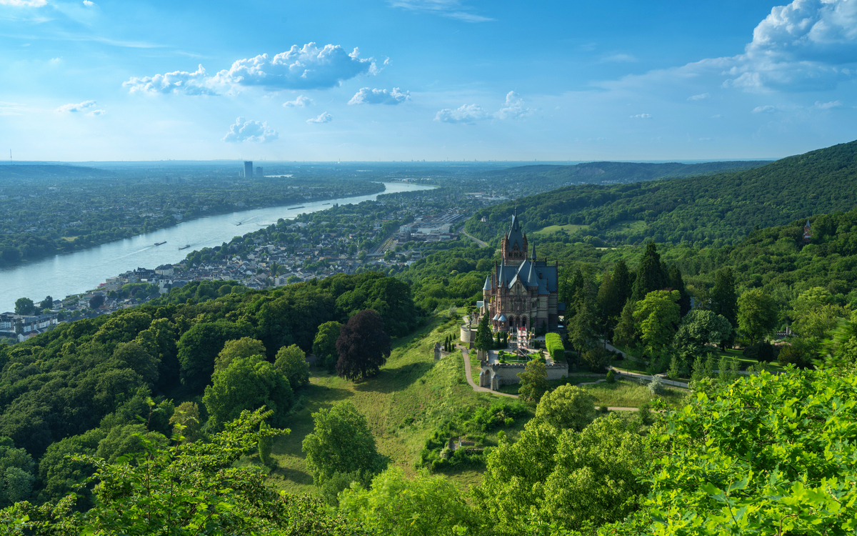 Die idyllische Weinstadt Königswinter liegt direkt am Rhein und am Fuße des Siebengebirges. 100 Kilometer Wanderwege führen durch Wälder und bieten immer wieder schöne Ausblicke ins Rheintal. Der bekannteste Berg ist der Drachenfels (321 m).