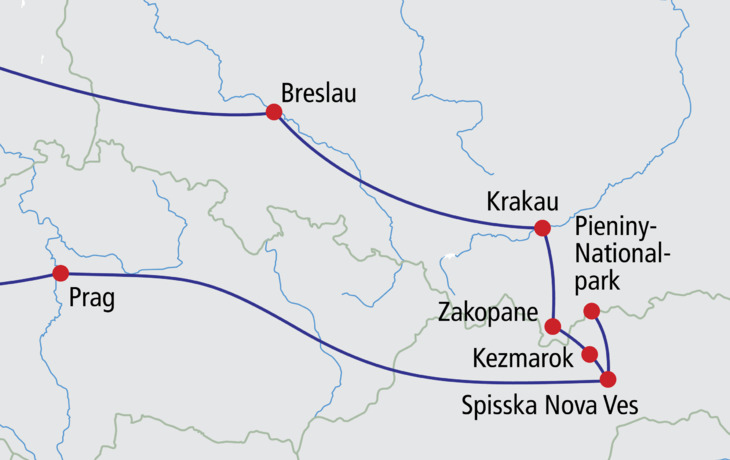 Breslau, Krakau und die Hohe Tatra sind faszinierende Reiseziele im Herzen Europas. Breslau verzaubert mit malerischen Brücken, prächtigen Kirchen und dem Marktplatz. Krakau, die ehemalige Haupt- und Königsstadt, bietet seinen Besuchern eine Vielzahl an stilvollen Renaissance-Villen und Gebäuden barocken Baustils. Die majestätischen Berggipfel der Hohen Tatra, des kleinsten Hochgebirges der Welt, erstrecken sich über die Grenze Polens bis in die Slowakei. Eindrucksvolle Städte und wunderschöne Landschaften, spannende Geschichten, Sagen und Traditionen erwarten Sie.