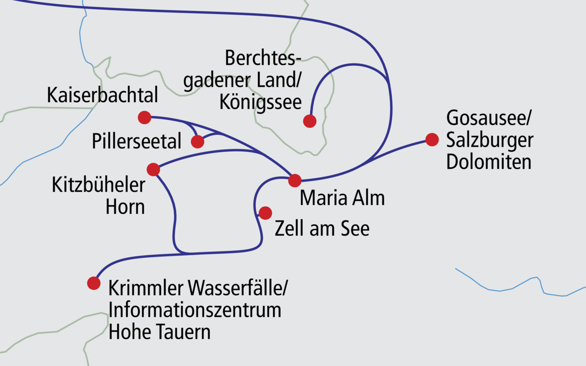 Am Fuße des Steinernen Meeres und des Hochkönigs liegt der Urlaubsort Maria Alm (800 m). Der alte Wallfahrtsort hat sich in den letzten Jahren zu einem beliebten Urlaubsort entwickelt. Maria Alm bietet ein großes Netz an Spazier- und Wanderwegen (ebener Talkessel), Sommerbergbahnen, herrliche Gebirgspanoramen und wunderschöne Wiesen. Es finden auch volkstümliche Veranstaltungen wie Heimatabende, Konzerte und Bauerntheater statt. Die im Reisepreis inkludierte Hochkönigcard bietet Ihnen im Ort einige Vergünstigungen wie beispielsweise die kostenlose Nutzung diverser Bergbahnen.
