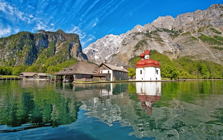 Eine Ausfahrt führt Sie in den Nationalpark Berchtesgadener Land zum Königssee. Hier unternehmen Sie eine Schifffahrt nach St. Bartholomä.