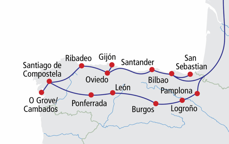 Erleben Sie bei dieser Rundreise das faszinierende Nordspanien. Fantastische Küstenabschnitte, herrliche Sandstrände, das Kantabrische Gebirge, dessen Ausläufer bis ans Meer heranreichen, und faszinierende Städte, wie Bilbao, San Sebastian, Santiago de Compostela, León und Pamplona, werden Sie entlang Ihrer Route begeistern und Ihnen das „grüne“ Spanien näherbringen. Eine Rundreise voller Erlebnisse erwartet Sie und wird Ihnen unvergessliche Eindrücke bescheren.