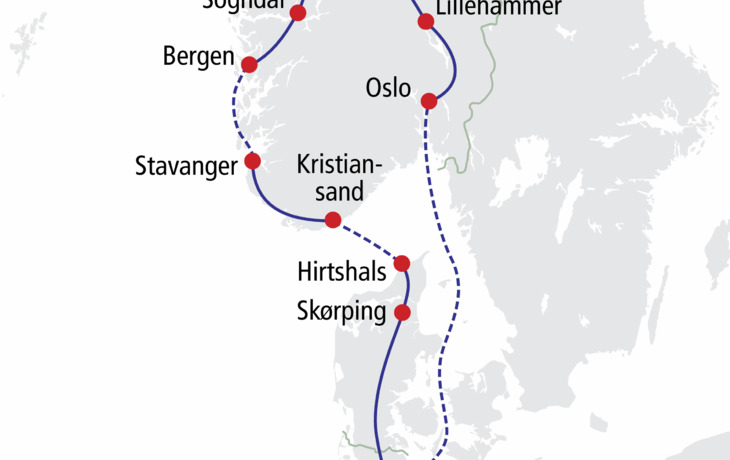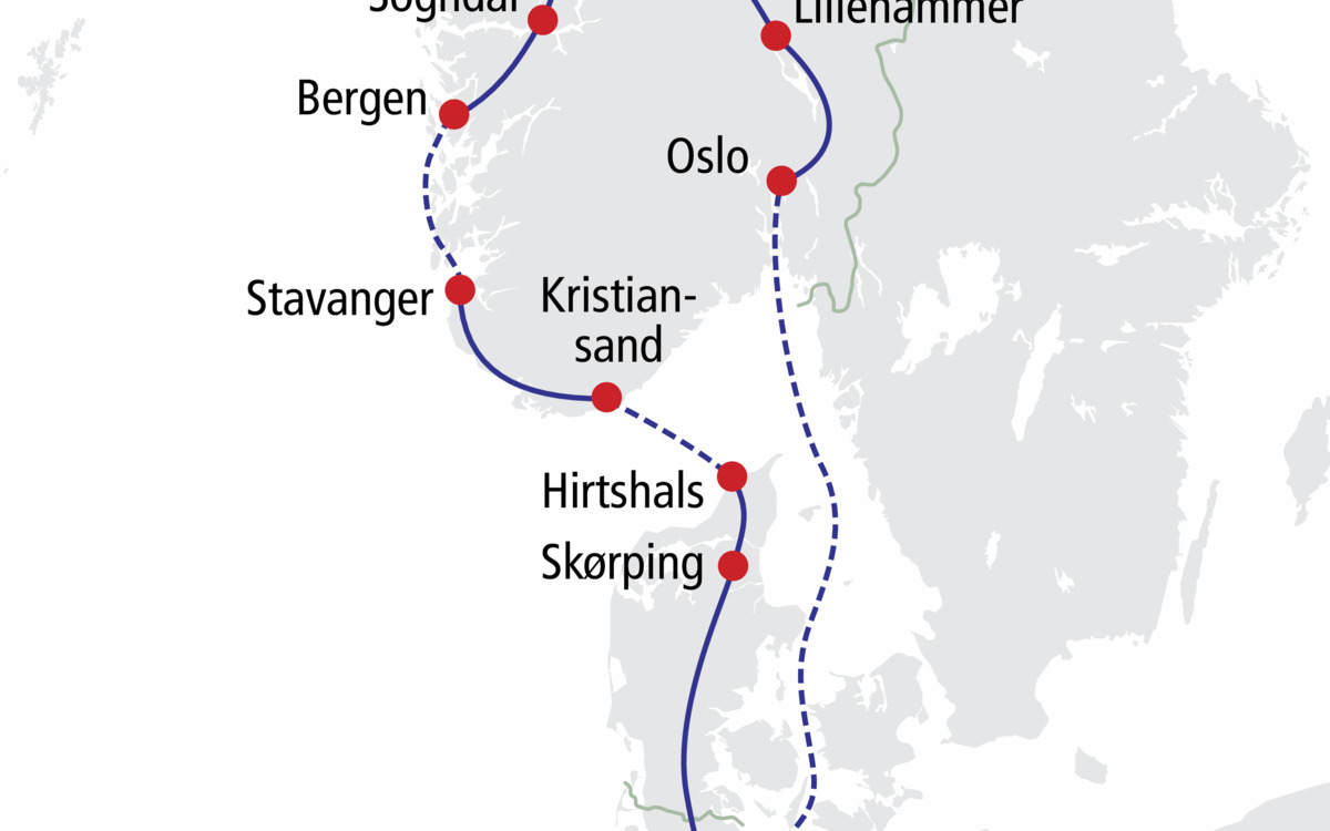 Die Welt der Fjorde erwartet Sie. Entdecken Sie auf dieser Reise die tief ins Land hereinragenden Wasserarme, die an beiden Uferseiten von einer einmaligen Bergwelt umgeben sind. Bei Schifffahrten auf dem Geirangerfjord und dem Sognefjord erleben Sie die Faszination der Fjorde umittelbar. Sie lernen die charmante Hauptstadt Oslo sowie die alte Hansestadt Bergen kennen und erfahren beim Besuch des Freilichtmuseums Maihaugen und der Stabkirche in Lom vom Leben und der Kultur der Norweger. Kommen Sie mit und lassen Sie sich von der einzigartigen und facettenreichen Landschaft Norwegens beeindrucken.