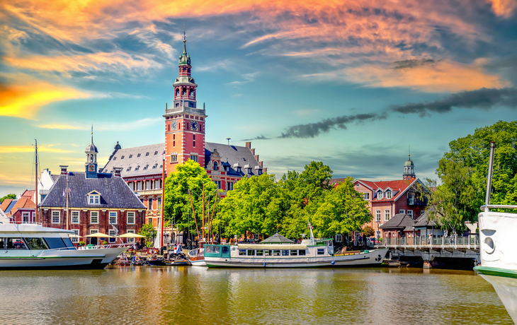 Hinter den Deichen - inmitten grüner Wiesen und fruchtbarer Getreidefelder - liegt Ostfriesland mit seinen zahlreichen Warftendörfern, historischen Windmühlen und reizvollen Kutterhäfen. Leer, eine charmante Hafenstadt in Ostfriesland, besticht durch maritimes Flair, historische Bürgerhäuser und eine einladende Altstadt. Der Stadtkern vereint enge Gassen, den Marktplatz mit Rathaus und St. Vitus-Kirche und bietet eine Reihe von Einkaufsmöglichkeiten und gemütlicher Gastronomie. Von hier aus lässt sich das Umland bequem entdecken.