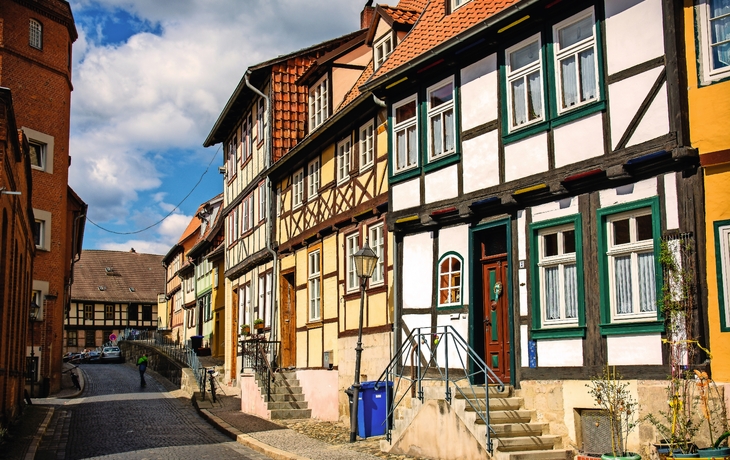 Die Anreise nach Quedlinburg führt Sie über Halberstadt, das "Tor zum Harz". Sie entdecken die Domstadt während einer Stadtführung. Anschließend fahren Sie weiter nach Quedlinburg. Nach dem Check-in im Hotel bietet sich ein erster Spaziergang durch die Fachwerkstadt an.