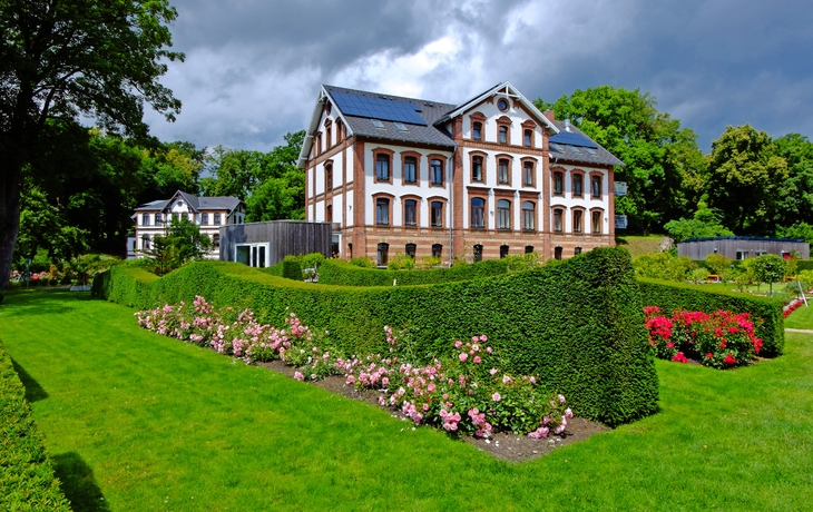 „Ein Traum und unvergleichlich schön gelegen“ schwärmen die Gäste über die unter Denkmalschutz stehenden Häuser des Hotels. Es liegt inmitten einer Parklandschaft zwischen Müritz und Tiefwarensee. Zugleich ist es nahe der Altstadt, die zu Fuß in zehn Minuten zu erreichen ist. Die Zimmer mit Ausblick auf den See oder in den Park haben Telefon, LCD-Flachbildschirm, Safe, Minibar und Bad/WC.