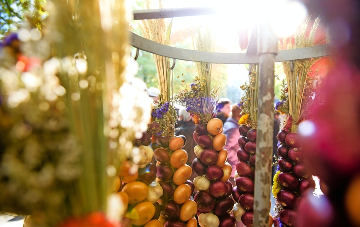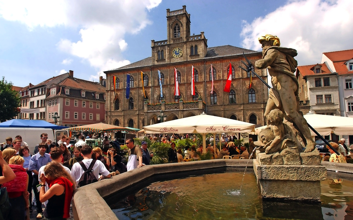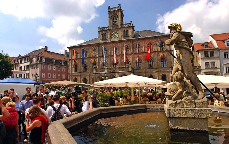 Erleben Sie den Weimarer Zwiebelmarkt, das älteste und größte sowie überregional bekannteste Volksfest Thüringens. Folkloristische Marktstände und ein buntes Bühnenprogramm verleihen Weimar eine einzigartige Atmosphäre, wenn die Zwiebelbauern aus dem nordthüringischen Heldrungen, die Mittelpunkt des Weimarer Marktes sind, ihre kunstvoll geflochtenen Zwiebelzöpfe feil bieten und es überall nach Weimarer Zwiebelkuchen duftet. Ein weiteres Erlebnis wartet in Eisenach, wo es im Rahmen einer Führung durch tausend Jahre Wartburg-Geschichte geht. Sie logieren in der Residenzstadt Gotha.
