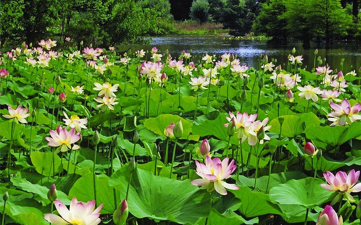 Der August lockt dann, wie immer, mit der spektakulären Lotosblüte. Auf dem See haben sich die rosaweißen Blüten entfaltet und ziehen alle Blicke auf sich.